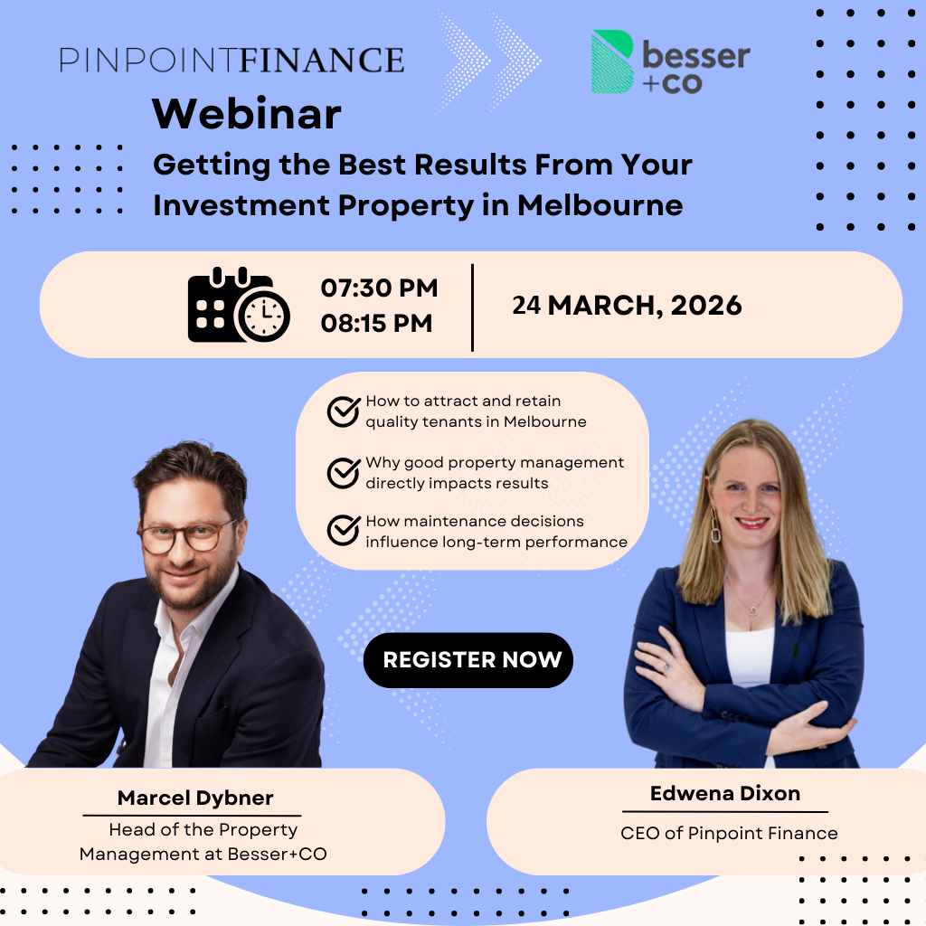 In this practical webinar, Edwena Dixon, Founder and Director of Pinpoint Finance, and Marcel Dybner, Head of Property Management and a Partner at Besser + Co walk you through what actually drives strong investment property performance.